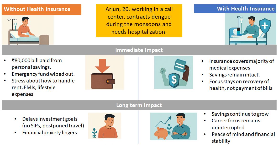 Why it matters : It ensures that sudden medical expenses don’t drain your savings or derail your early financial progress. Affordable premiums at this stage make it easier to maintain long-term continuity of coverage, while also instilling financial discipline through tax benefits. Beyond emergencies, it is beneficial as employer coverage may be limited or not portable when changing jobs. You get early protection against lifestyle-related illnesses, giving you the confidence to focus on building your career and future without the fear of unexpected medical costs.